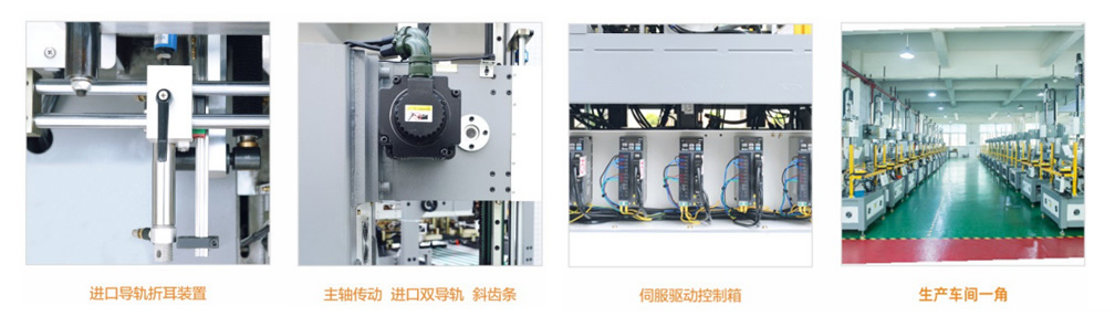 該機(jī)融紙盒的包邊、折入,壓泡為一體,運(yùn)用伺服驅(qū)動(dòng)斜齒輪和凸輪完成連貫動(dòng)作,穩(wěn)定流暢,精密耐用,是目前相對(duì)合理的一款成型機(jī),也是廣大禮品盒生產(chǎn)廠家的明智必選機(jī)型。